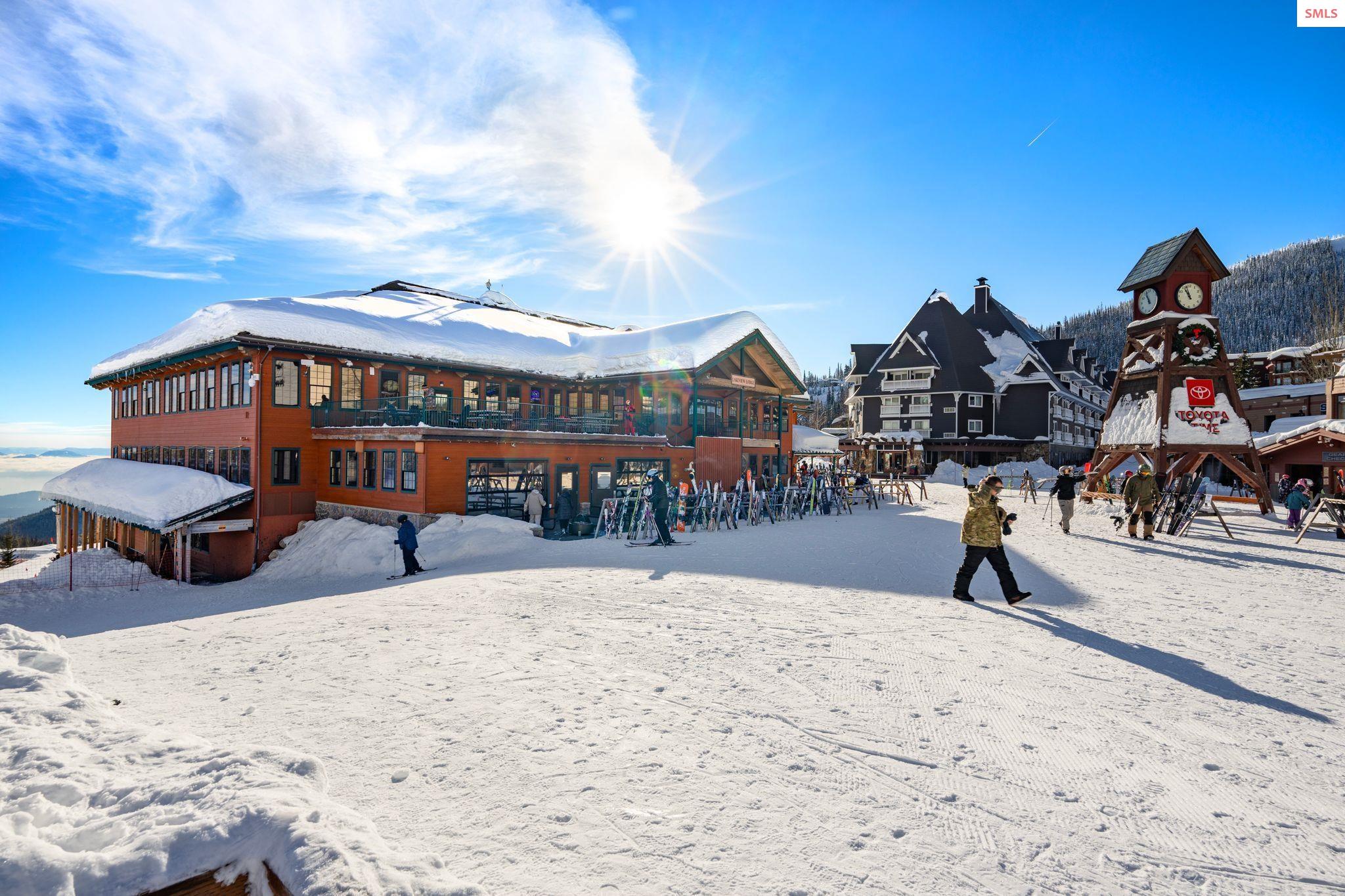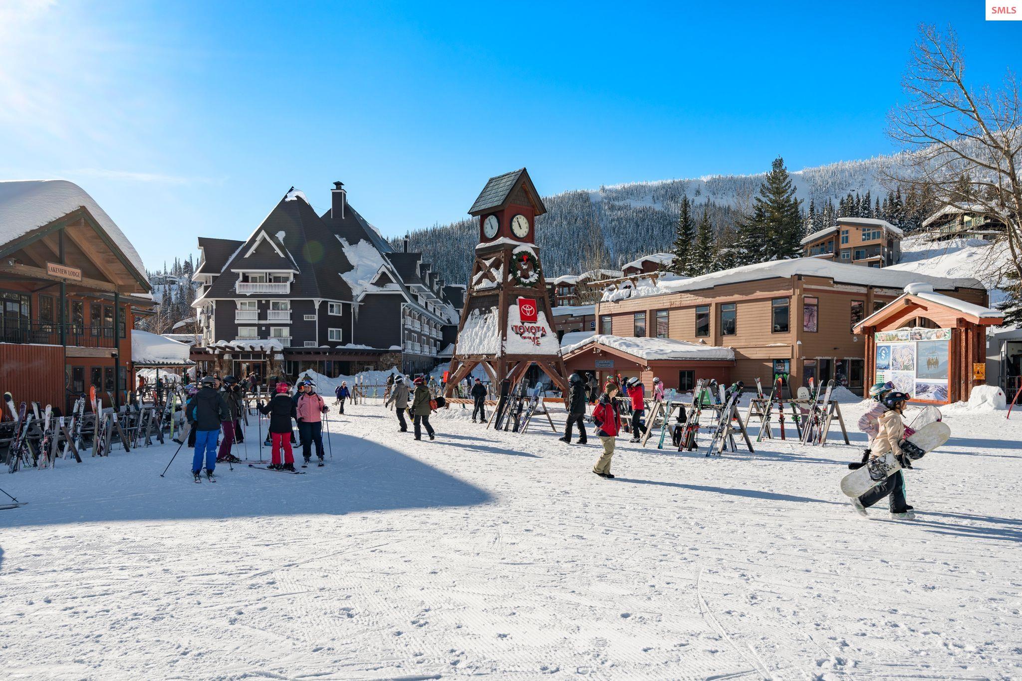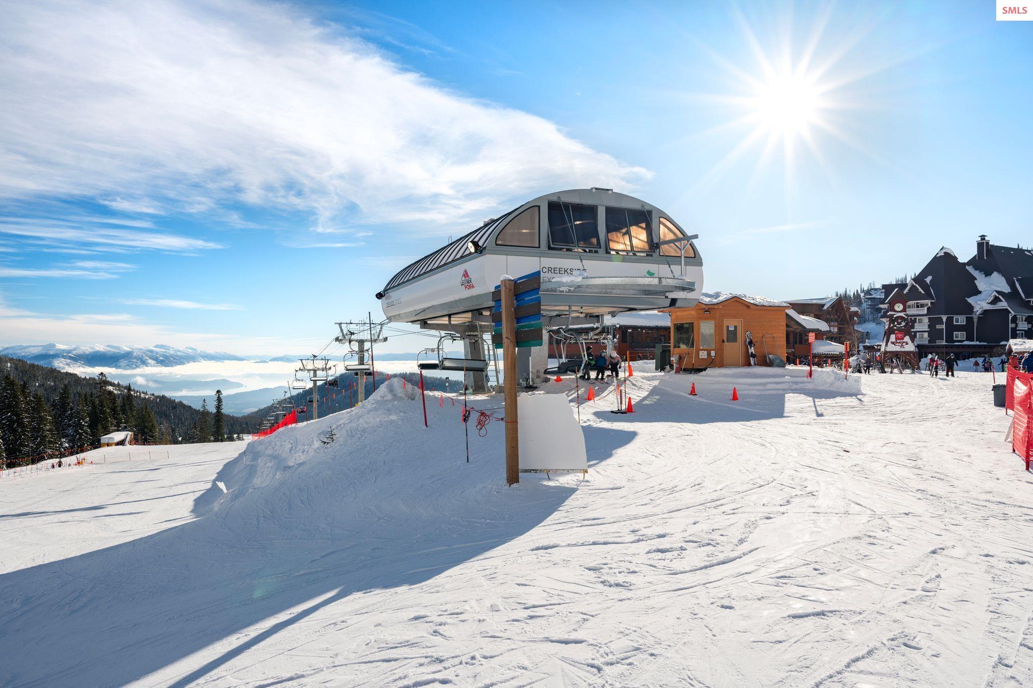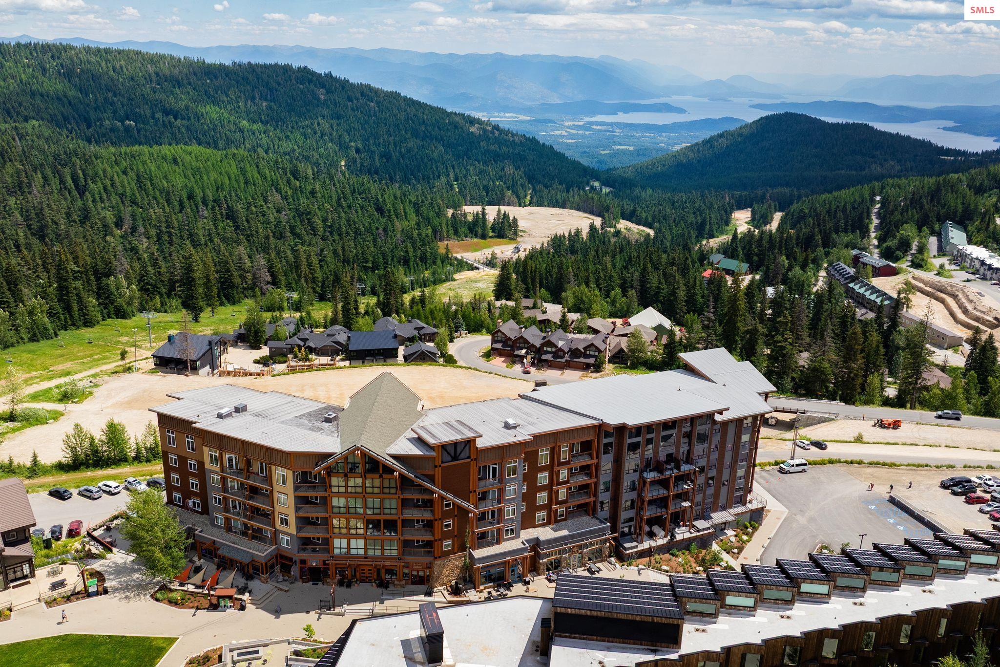 Experience elevated mountain living in this stunning one-bedroom, two-bathroom luxury condo located in the heart of Schweitzer Mountain Resort. This ski-in/ski-out retreat offers direct access to the slopes and breathtaking views of Lake Pend Oreille, combining adventure with upscale comfort. Designed with high-end finishes and refined mountain elegance, the open-concept living space features modern elegance, custom cabinetry, quartz countertops, and fireplace for cozy apres-ski evenings. The gourmet kitchen is equipped with premium appliances and ample storage. The primary suite includes a spacious ensuite bathroom with a stacking washer and dryer, while the main floor second full bath offers added convenience for guests. Floor-to-ceiling windows offer sweeping lake, slope and mountain vistas. Located just steps from Schweitzer Village, you'll enjoy access to resort amenities including restaurants, shopping, a full-service spa, and year-round activities. Secure building access, private ski storage, and underground parking complete the picture of effortless alpine lifestyle. Whether you're seeking a personal mountain getaway or a strong investment opportunity, this condo delivers on every level. Live the mountain lifestyle--luxury, location, and leisure all in one.