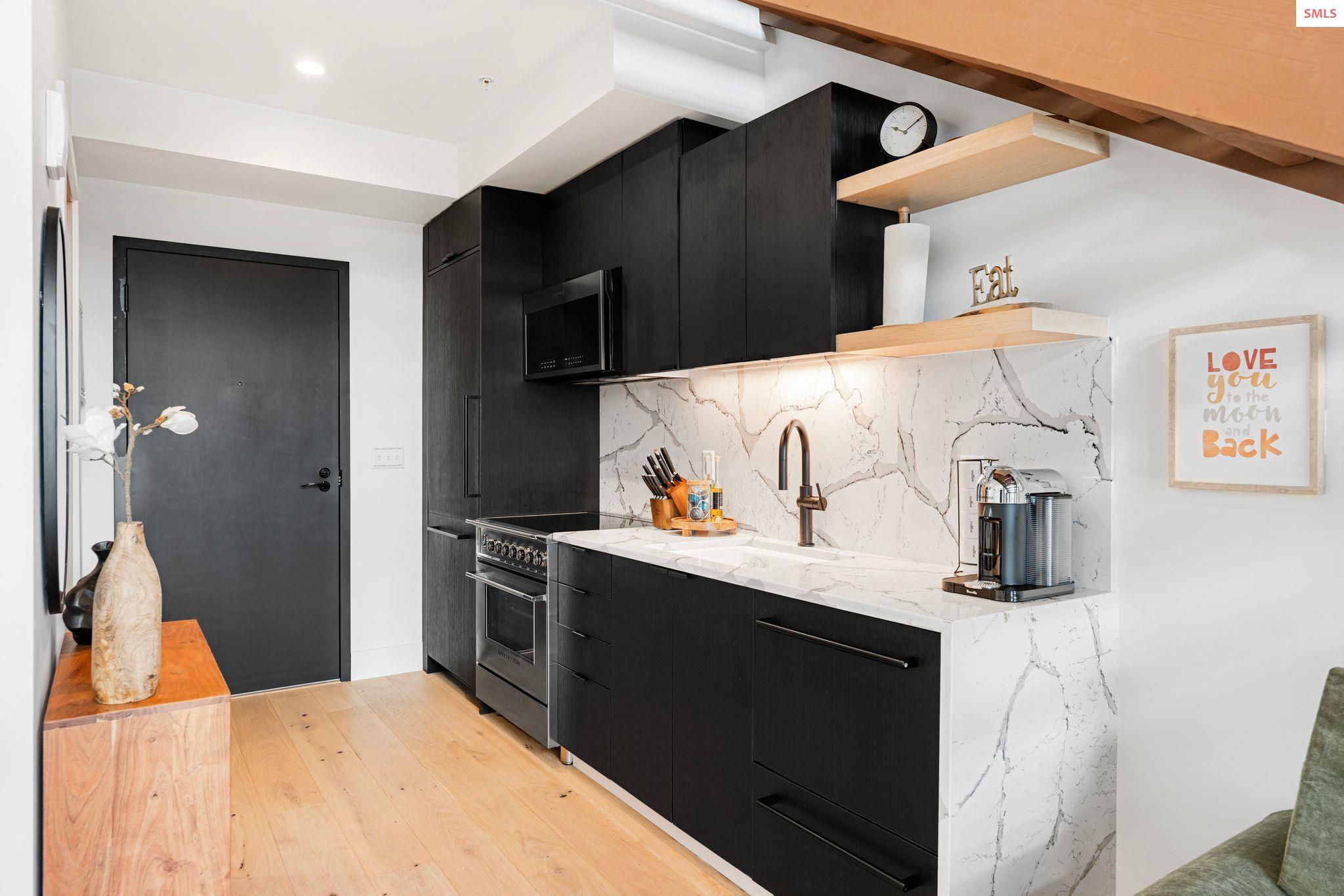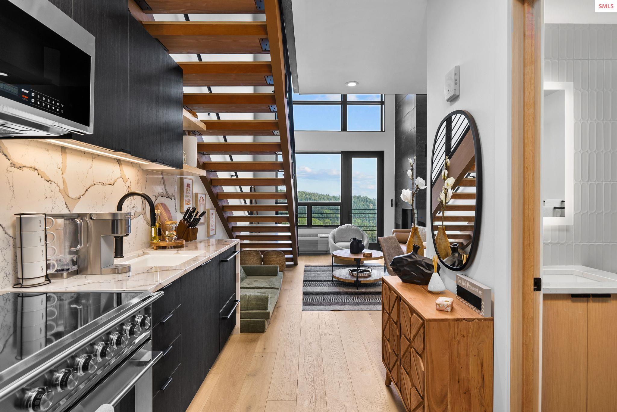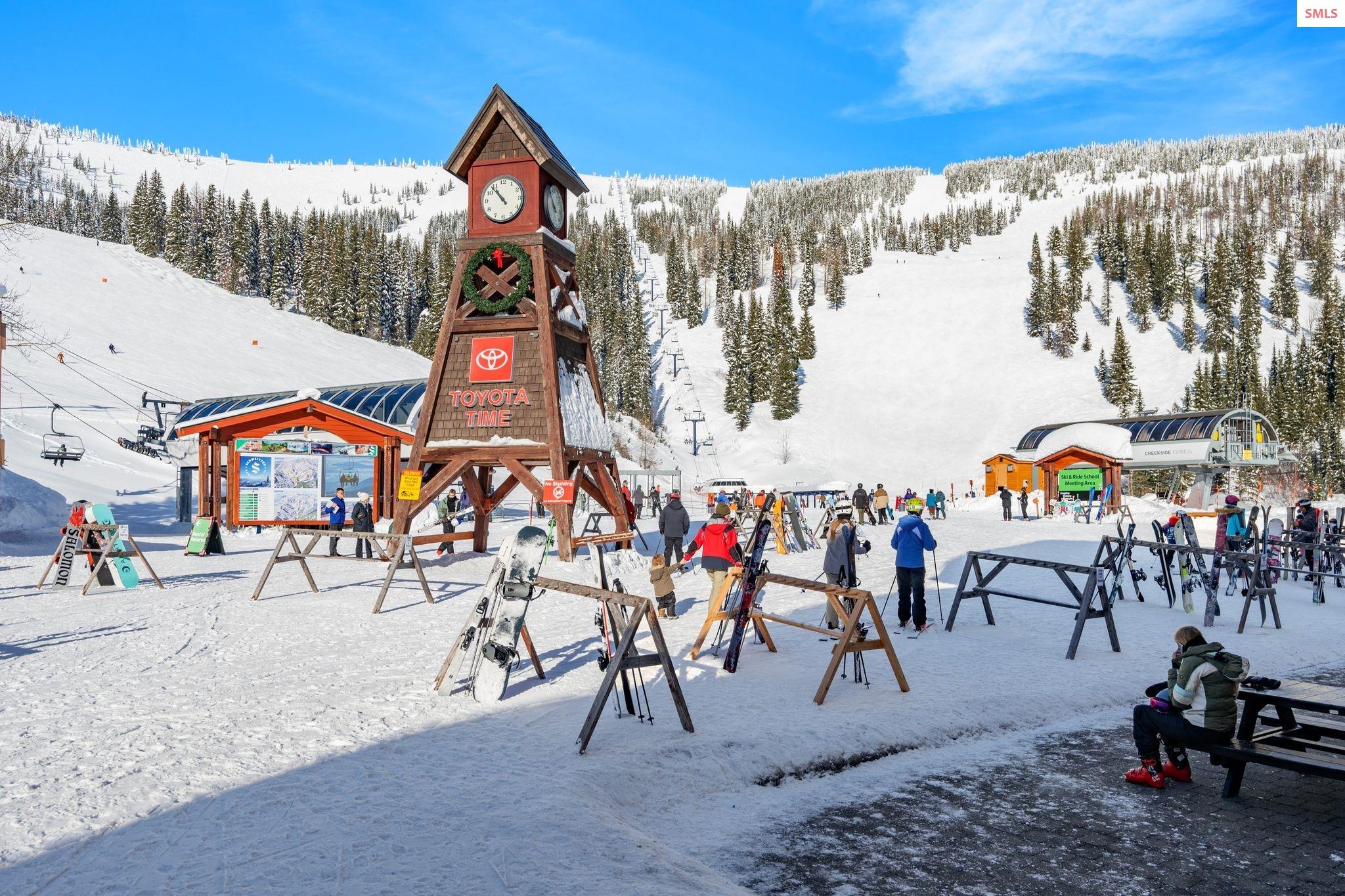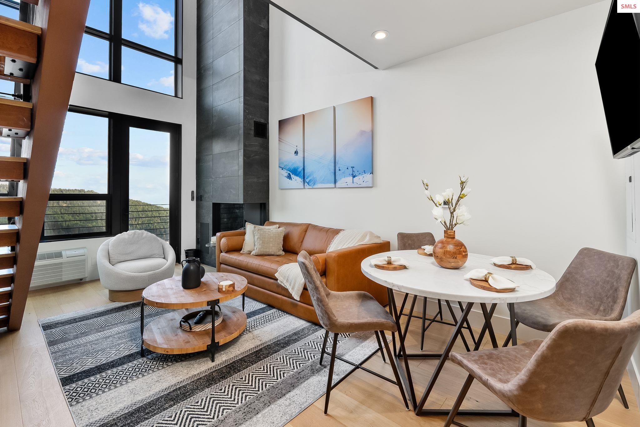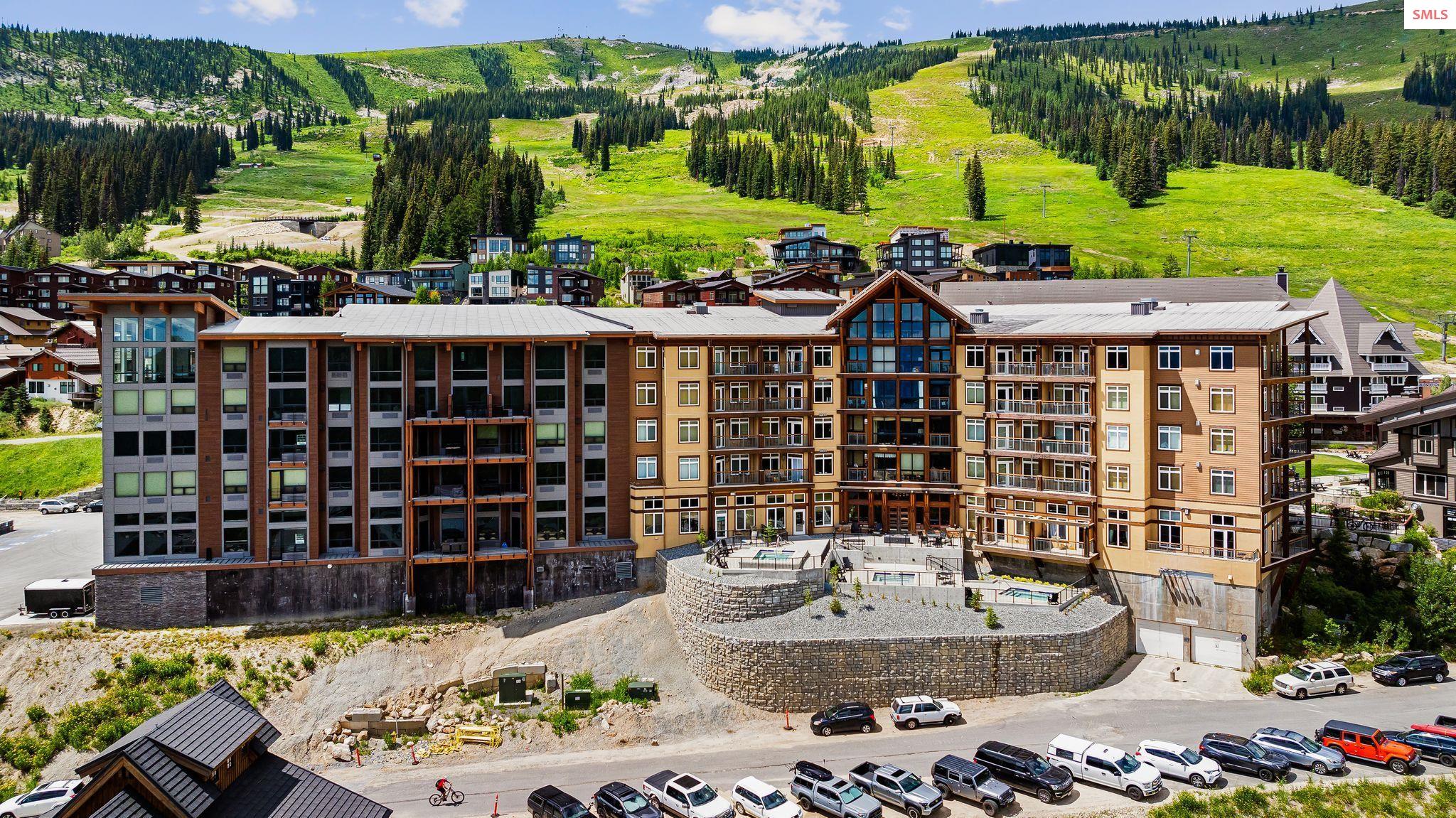Experience elevated mountain living in this stunning one-bedroom, two-bathroom luxury condo located in the heart of Schweitzer Mountain Resort. This ski-in/ski-out retreat offers direct access to the slopes and breathtaking views of Lake Pend Oreille, combining adventure with upscale comfort. Designed with high-end finishes and refined mountain elegance, the open-concept living space features modern elegance, custom cabinetry, quartz countertops, and fireplace for cozy apres-ski evenings. The gourmet kitchen is equipped with premium appliances and ample storage. The primary suite includes a spacious ensuite bathroom with a stacking washer and dryer, while the main floor second full bath offers added convenience for guests. Floor-to-ceiling windows offer sweeping lake, slope and mountain vistas. Located just steps from Schweitzer Village, you'll enjoy access to resort amenities including restaurants, shopping, a full-service spa, and year-round activities. Secure building access, private ski storage, and underground parking complete the picture of effortless alpine lifestyle. Whether you're seeking a personal mountain getaway or a strong investment opportunity, this condo delivers on every level. Live the mountain lifestyle--luxury, location, and leisure all in one.