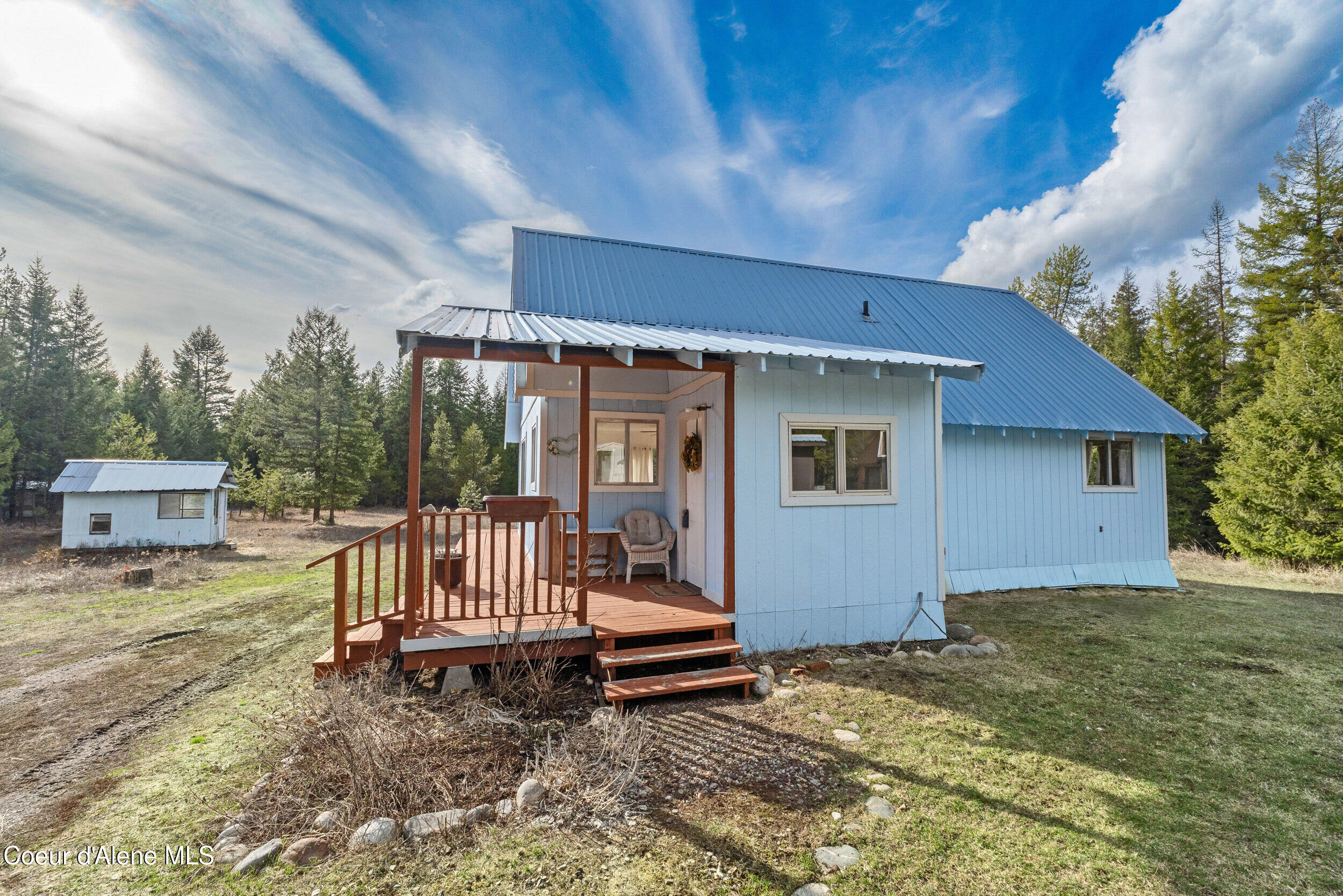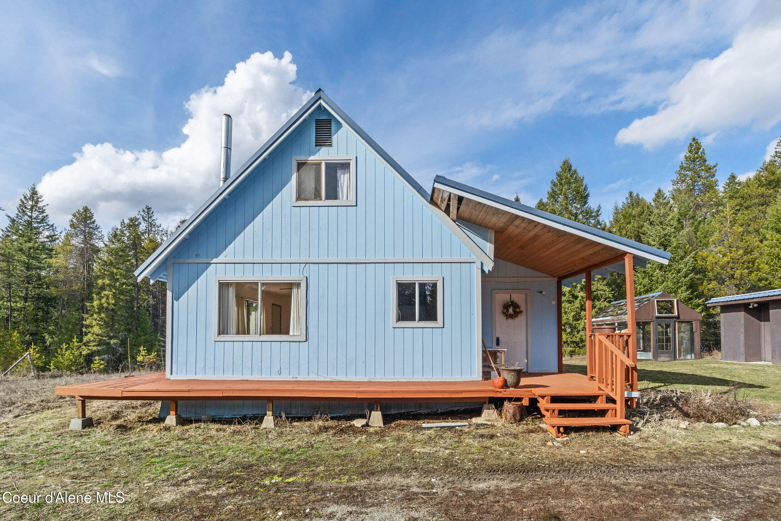 Tucked away in a tranquil setting, this charming four-bedroom, two-bathroom home sits on a stunning 5-acre property, surrounded by lush trees and nature's serenity. Perfect for those seeking a peaceful escape from the hustle and bustle of city life. Home Features Wood-burning fireplace, Main floor utilities, a mud room, and a nice Wrap-around porch. Outside has lots to offer with many sheds, greenhouse, and car carport or wood storage area. This one is sure to sell FAST.