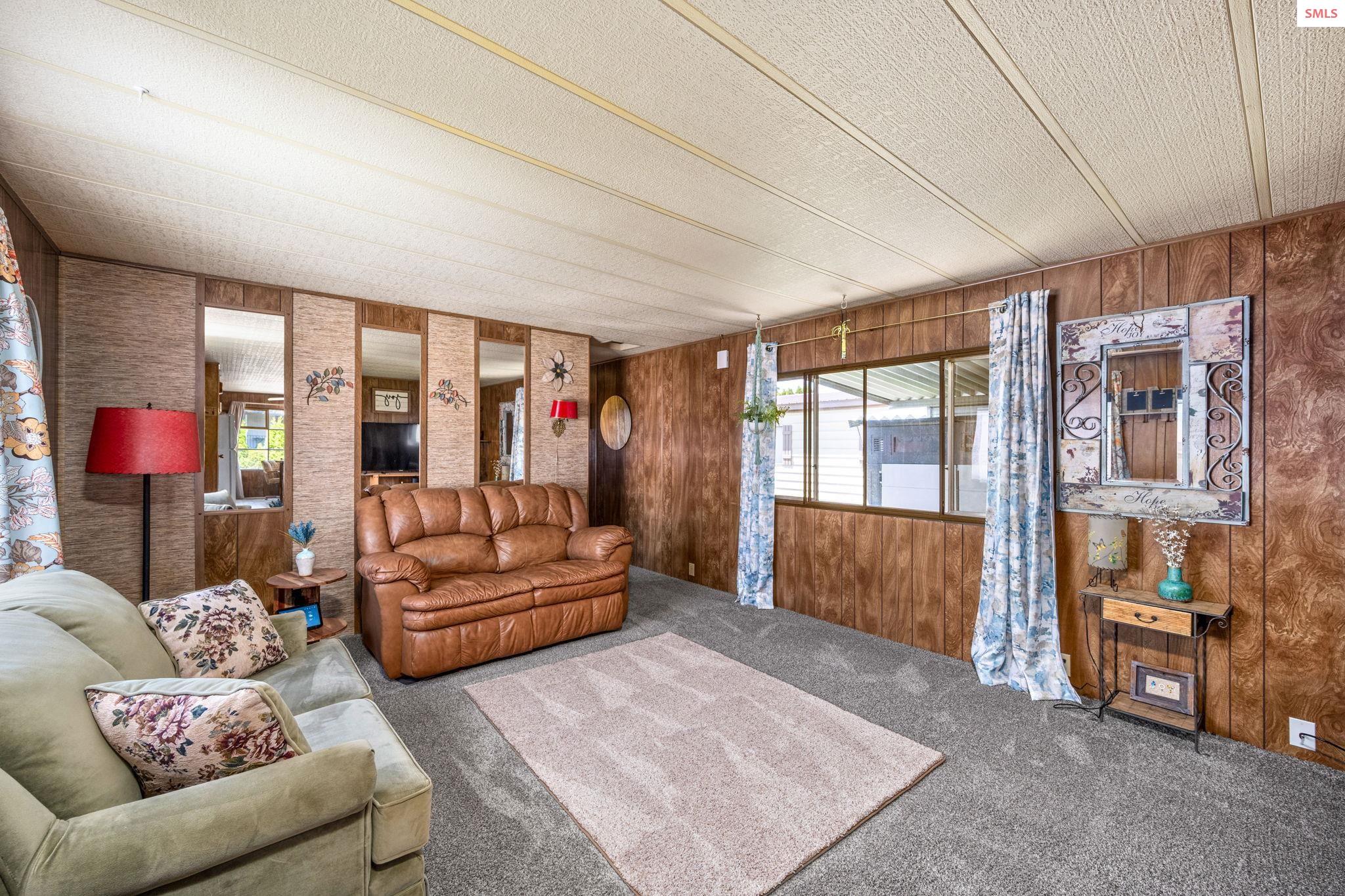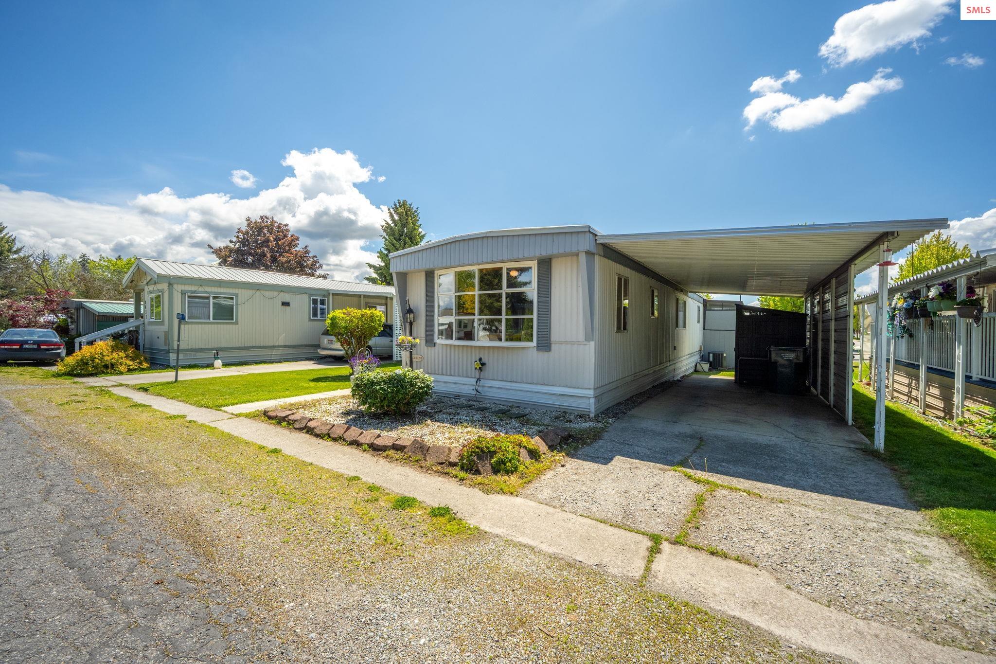 55+ Community in Hayden! 2 Bedroom 1 Bath with Carport and Storage. This well kept home has been thoughtfully updated and is ready for its next owner. Enjoy peace of mind with a brand-new roof installed in July 2024, along with fresh carpet and flooring throughout. The furnace and Central Air is newer and has been recently serviced, and all appliances are in excellent working condition. The layout is both functional and distinctive, offering plenty of natural light. Situated in the desirable 55+ Hayden Pines community, you'll love the convenient location and quiet neighborhood feel. The current lot rent is $475/month, This park offers the lowest monthly rates in the area and allows renting of your units. Fee covers rent, sewer, garbage and snow removal. Great central location with easy access to dining, medical transportation and Beautiful Hayden Lake. Quiet streets and friendly Neighborhood. Option to purchase home furnished as well